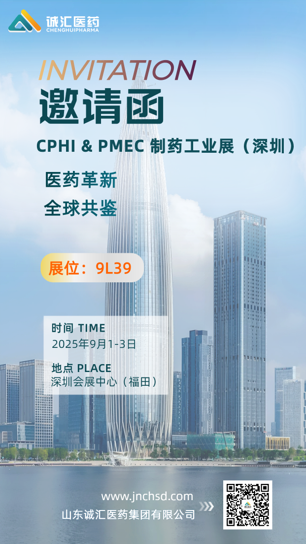 山東誠(chéng)匯醫(yī)藥集團(tuán)誠(chéng)摯邀請(qǐng)您蒞臨CPHI & PMEC制藥工業(yè)展(深圳),本次展會(huì)將于9月1-3日在深圳會(huì)展中心隆重舉行,我們將在9L39展位恭候您的到來(lái),期待金秋九月與您相聚深圳!